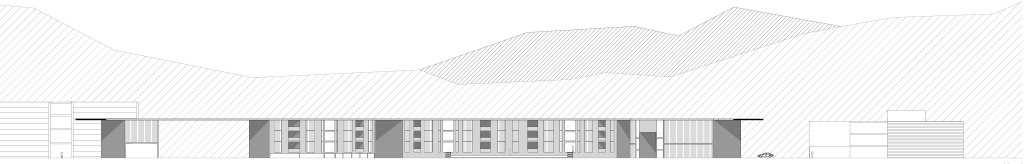 Las fachadas están formadas por lamas verticales en las zonas vidriadas. Con esto, se ha querido continuar con una estética de lineas marcadas que predominan en las fachadas que forman el parque tecnológico. Además, el edificio queda cortado en franjas según el uso, pero la cubierta nunca se ve afectada, siguiendo la idea de continuidad y unión pero, al mismo tiempo, enmarcando el paisaje i dirigiendo los recorridos.